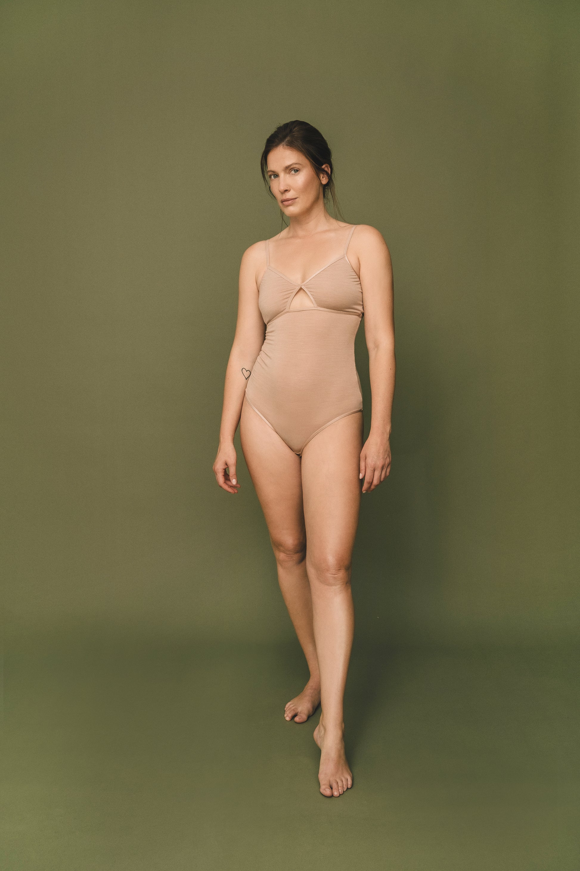 Możesz je nosić bez stanika, albo z idealnie pasującą braletką Alta. Pod biustem od środka wszyta jest szeroka guma, która zapewnia dyskretne wsparcie. Dekolt w kształcie litery V pogłębisz w razie potrzeby, luzując elastyczne ramiączka.