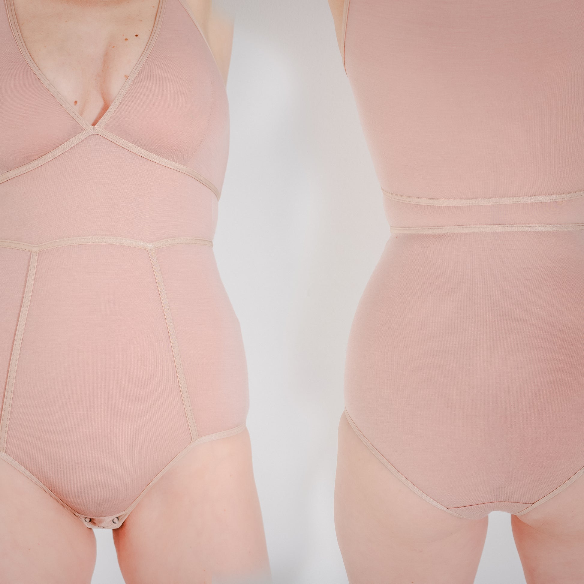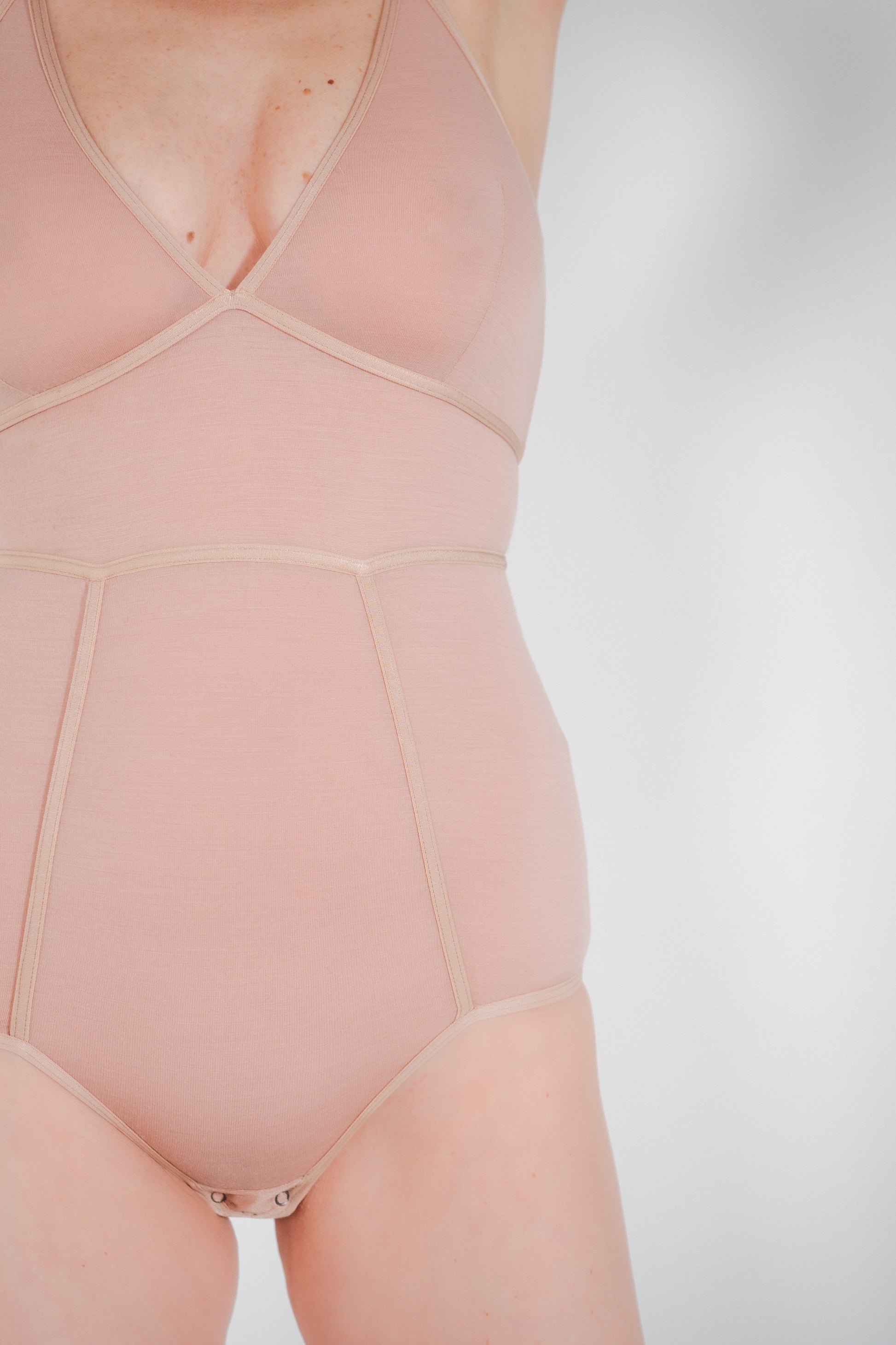Dopasowane body z elastycznej wełny, z wygodnym regulowanym zapięciem na dole i regulowanymi ramiączkami. Minimalistyczne w formie, przełamanej zdobieniami z lamówki, które tworzą linie optycznie wysmuklające sylwetkę i podkreślające talię. Zabudowany tył zapewnia komfort termiczny podczas.