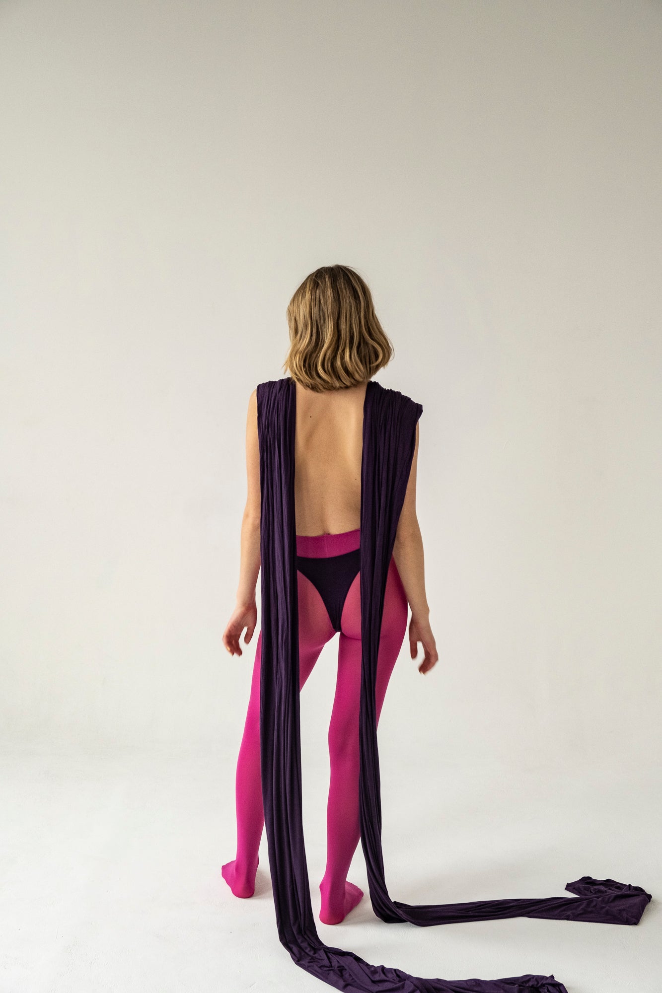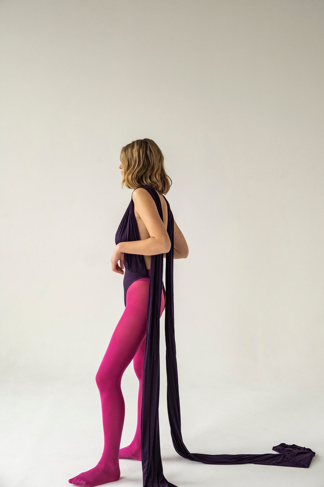 Body, które może być sukienką, albo bluzką, wiązaną na wiele różnych sposobów. Ogranicza cię tylko twoja fantazja. Dół body ma fason stringów.