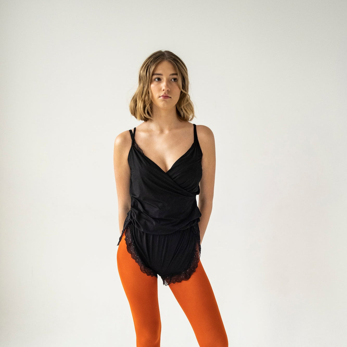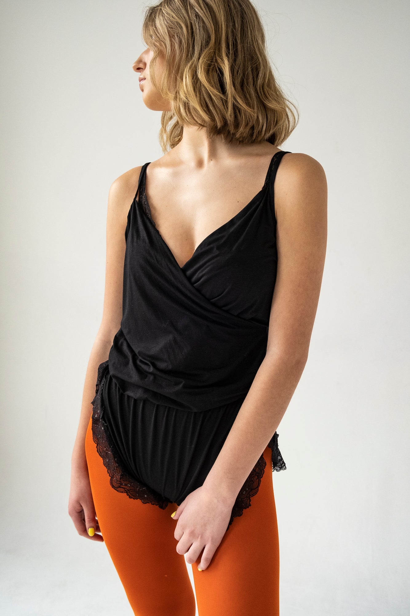 Madryt należy do rzadkiej kategorii odzieży zwanej bielizną dzienną lub podomką (ang. loungwear). Współczesne podomki mają zwykle bardziej sportowy charakter, ale my nawiązujemy do klimatów retro, stosując w Madrycie rozwiązanie inspirowane zapięciami, które zaobserwowałyśmy w bieliźnie z lat 20. Pozostawiamy też do twojej decyzji jego przeznaczenie. Naszym zdaniem ten model sprawdzi się zarówno w roli bielizny nocnej, jak i dziennej. Możesz w nim spać, a potem przygotować i podać niedzielne śniadanie na tarasie. Albo włożyć do niego zwiewną letnią spódnicę i potraktować jak bluzkę z szortami. Luźny dół świetnie sprawdzi się w upały.